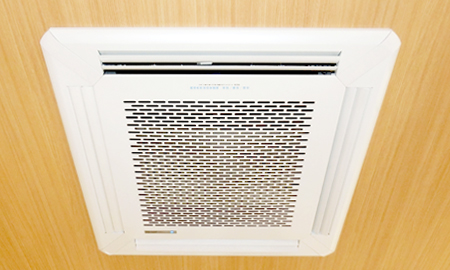 天井に埋め込まれた3台の大型空気清浄機で歯や入れ歯の切削粉塵・細菌・歯科特有の薬品臭を浄化し、清浄な空気環境の中で診療します。